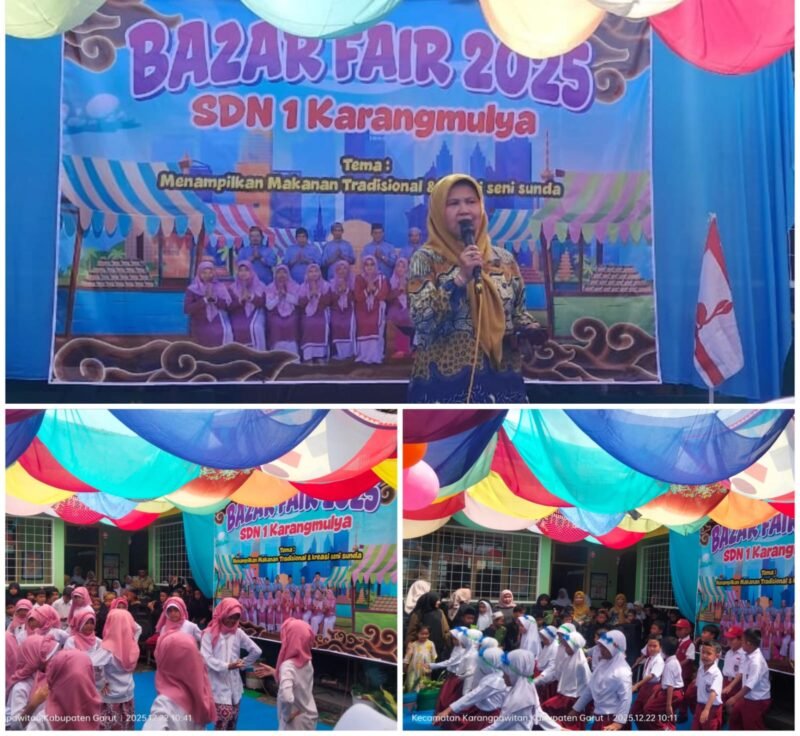 Nusaharianmedia.com — SD Negeri 1 Karangmulya, Kecamatan Karangpawitan, Kabupaten Garut, menggelar kegiatan Bazar Fair 2025 pada Senin, 22 Desember 2025. Kegiatan tersebut berlangsung meriah dengan menampilkan beragam kuliner tradisional serta kreativitas seni budaya Sunda yang melibatkan partisipasi aktif siswa, orang tua, dan guru.