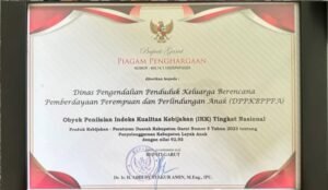 Penghargaan tersebut diserahkan langsung oleh Bupati Garut, Abdusy Syakur Amin, kepada Kepala Dinas Pengendalian Penduduk, Keluarga Berencana, Pemberdayaan Perempuan, dan Perlindungan Anak (DPPKBPPPA) Kabupaten Garut, Yayan Waryana, dalam rangkaian apel gabungan di Lapangan Sekretariat Daerah Kabupaten Garut.