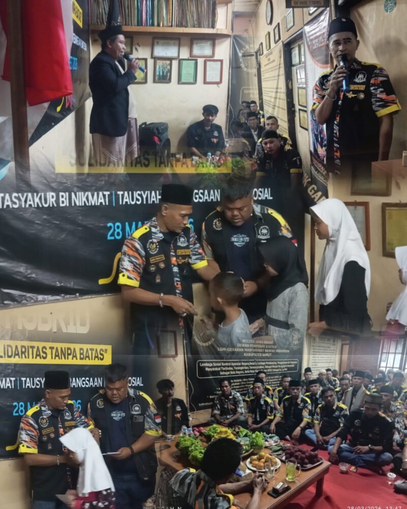 Nusaharianmedia.com 28 Maret 2026 – Lembaga Swadaya Masyarakat Gerakan Masyarakat Bawah Indonesia (LSM GMBI) Distrik Garut memperingati hari lahir (harlah) ke-24 dengan menggelar rangkaian kegiatan di Sekretariat LSM GMBI, Jalan Patriot No. 07, Kabupaten Garut. Kegiatan tersebut diisi dengan sholawat kebangsaan serta santunan kepada anak yatim sebagai wujud kepedulian sosial organisasi.