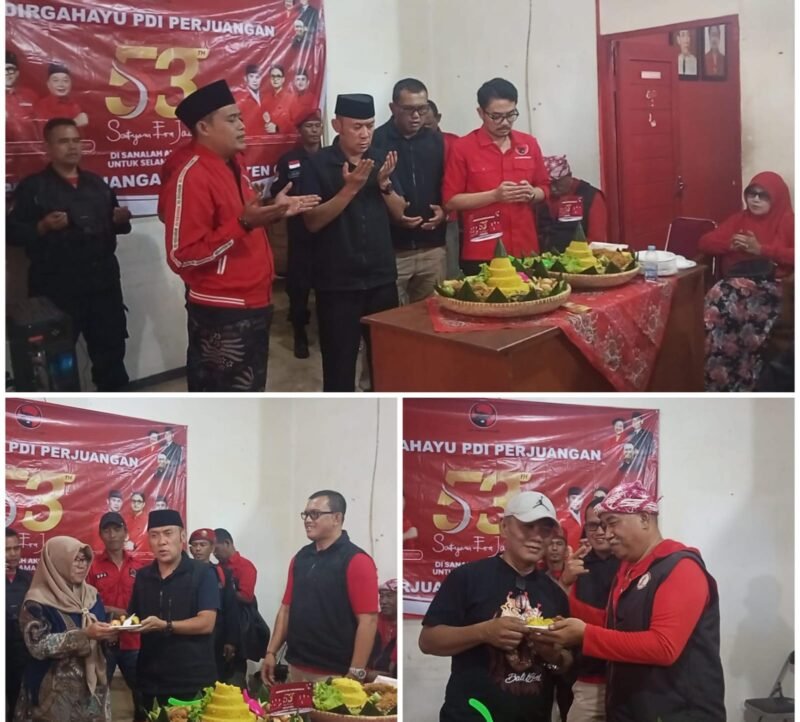 Nusaharianmedia.com — Dewan Pimpinan Cabang (DPC) PDI Perjuangan Kabupaten Garut memperingati Hari Ulang Tahun (HUT) ke-53 PDI Perjuangan dengan menggelar doa bersama dan pemotongan tumpeng yang berlangsung di (PDC) PDI Perjuangan Garut, Rabu (14/1/2026). Kegiatan tersebut dihadiri oleh jajaran struktur DPC, pengurus Pimpinan Anak Cabang (PAC), serta para simpatisan PDI Perjuangan se-Kabupaten Garut.