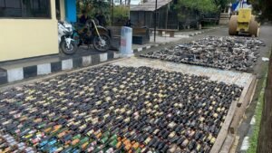“Sebanyak 1.852 botol minuman keras dan 704 knalpot brong kami musnahkan sebagai bentuk komitmen Polres Garut dalam menindak tegas peredaran miras serta penggunaan knalpot tidak sesuai spesifikasi yang dapat mengganggu ketertiban masyarakat,” ujar Kapolres.