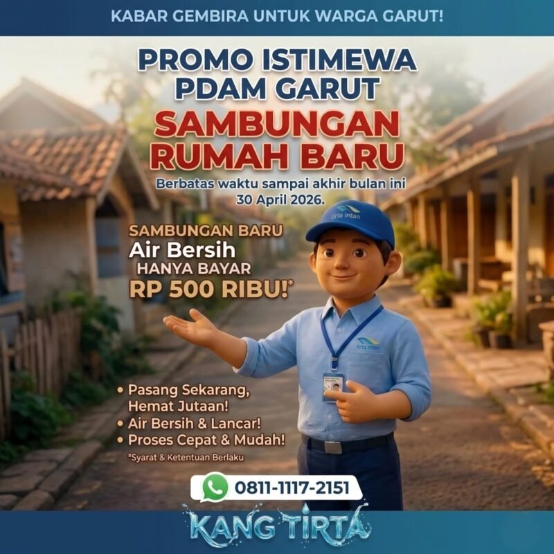 Masyarakat diimbau untuk segera memanfaatkan kesempatan ini sebelum kuota promo habis dan masa program berakhir. Untuk pendaftaran dan informasi lebih lanjut, warga dapat menghubungi layanan resmi di nomor 0811-1117-2151 atau mendatangi kantor pelayanan Perumda Tirta Intan Garut terdekat.