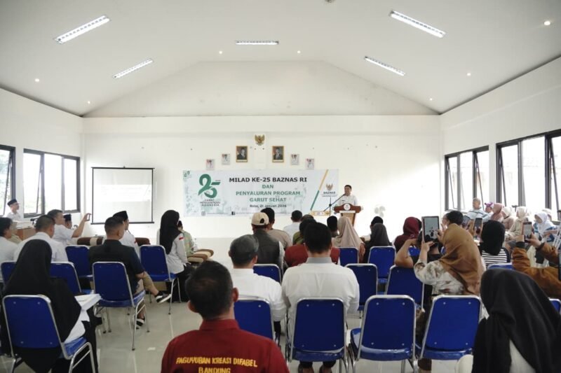 Nusaharianmedia.com Garut Kota – Bupati Garut, Abdusy Syakur Amin, menghadiri puncak peringatan Milad ke-25 Badan Amil Zakat Nasional (BAZNAS) Kabupaten Garut yang dirangkaikan dengan penyaluran program Garut Sehat. Kegiatan tersebut berlangsung di Kantor BAZNAS Garut, Jalan Pramuka, Kecamatan Garut Kota, Rabu (21/1/2026).