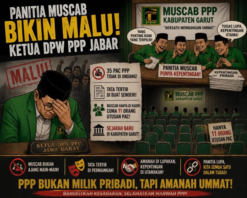 Nusaharianmedia.com 27 April 2026 — Pelaksanaan Musyawarah Cabang (Muscab) Partai Persatuan Pembangunan (PPP) Kabupaten Garut menuai polemik serius. Sejumlah Pengurus Anak Cabang (PAC) menyampaikan kekecewaan mendalam terhadap kinerja panitia yang dinilai tidak profesional serta sarat kepentingan.