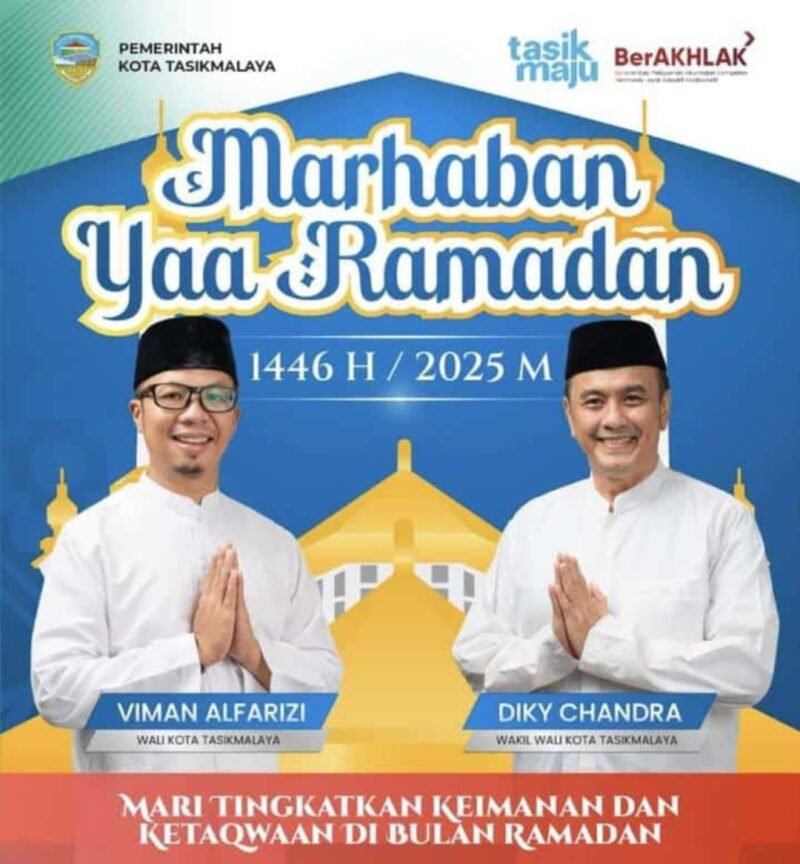 “Semoga Ramadhan tahun ini membawa keberkahan, kedamaian, serta kesejahteraan bagi kita semua. Mari bersama-sama menjadikan Kota Tasikmalaya yang lebih religius, harmonis, dan sejahtera dalam lindungan Allah SWT,” demikian pernyataan resmi dari Pemerintah Kota Tasikmalaya. Walikota dan Wakil Walikota Tasikmalaya Viman Alfarizi dan Rd.Dicky Candranegara. (DIX)