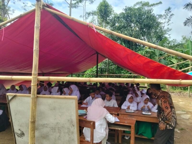 Ironisnya, kondisi memprihatinkan ini dibiarkan berlarut-larut. Demi keselamatan siswa, pihak sekolah tak punya pilihan selain memindahkan proses belajar ke luar kelas. Ruang belajar darurat yang jauh dari kata layak itu menjadi saksi betapa hak dasar anak-anak atas pendidikan yang aman dan manusiawi masih terabaikan.