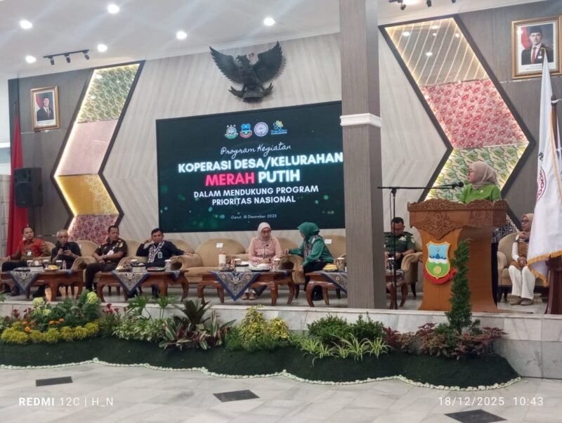 Mewakili Bupati Garut yang berhalangan hadir, Wakil Bupati Garut drg. Hj. Luthfianisa Putri Karlina, MBA menegaskan komitmen Pemkab Garut dalam mendukung penguatan ekonomi kerakyatan melalui pengembangan Koperasi Desa/Kelurahan Merah Putih. Ia menyampaikan bahwa koperasi merupakan fondasi penting dalam mewujudkan kemandirian ekonomi masyarakat desa yang sejalan dengan nilai gotong royong bangsa Indonesia.
