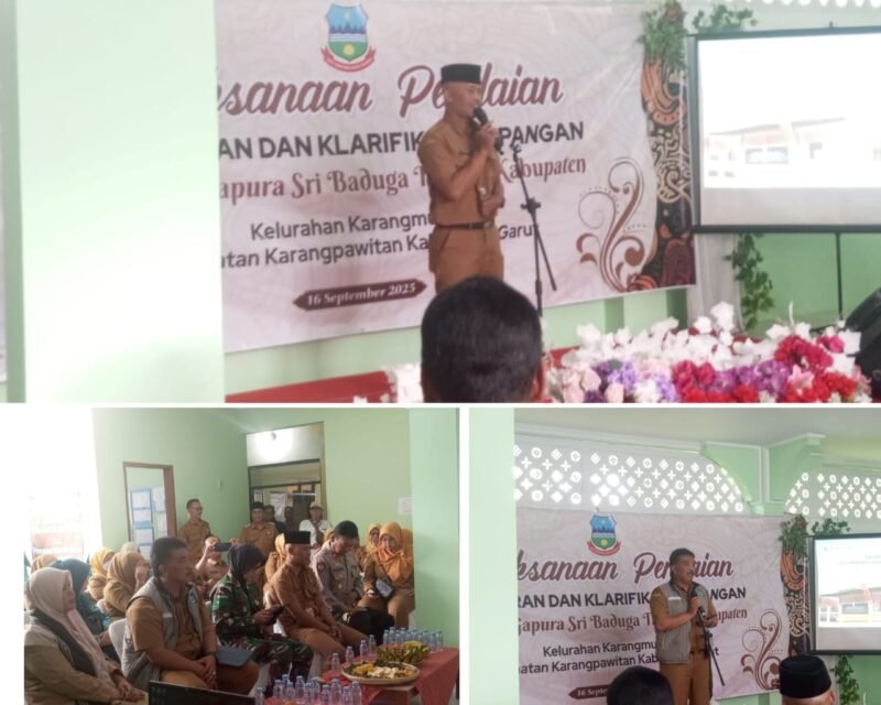Nusaharianmedia.com , 16 September 2025 — Suasana penuh semangat menyelimuti Aula Kelurahan Karangmulya, Kecamatan Karangpawitan, pada Selasa (16/9). Acara Pelaksanaan Penilaian, Pemaparan, dan Klarifikasi Lapangan Anugerah Gapura Sri Baduga Tingkat Kabupaten Garut berlangsung khidmat dan meriah.