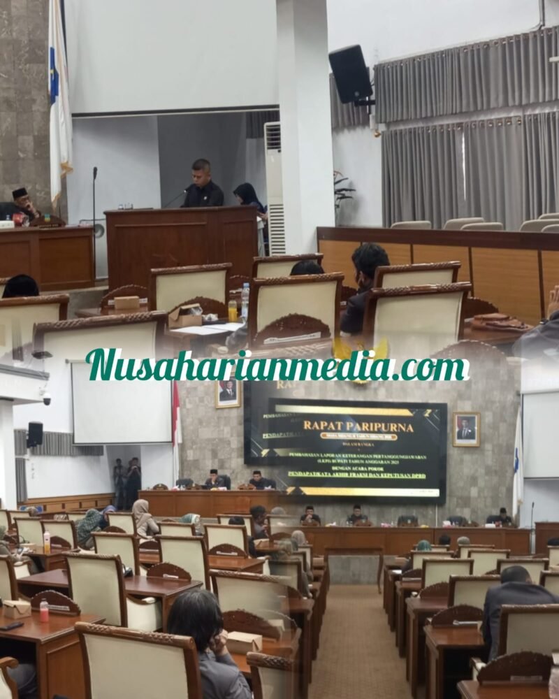 Nusaharianmedia.com — Dewan Perwakilan Rakyat Daerah (DPRD) Kabupaten Garut menggelar Rapat Paripurna Masa Sidang II Tahun Sidang 2026, Senin (27/4/2026), dengan agenda utama pembahasan Laporan Keterangan Pertanggungjawaban (LKPJ) Bupati Tahun Anggaran 2025. Rapat ditutup dengan penyampaian pandangan akhir fraksi serta pengambilan keputusan.